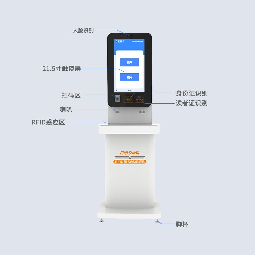 RFID自助借还书机,配备中英文操作界面,支持多本图书同时处理,实现快速自助借还服务。简化借阅流程,提升图书馆运营效率,为读者与管理员带来便捷体验。