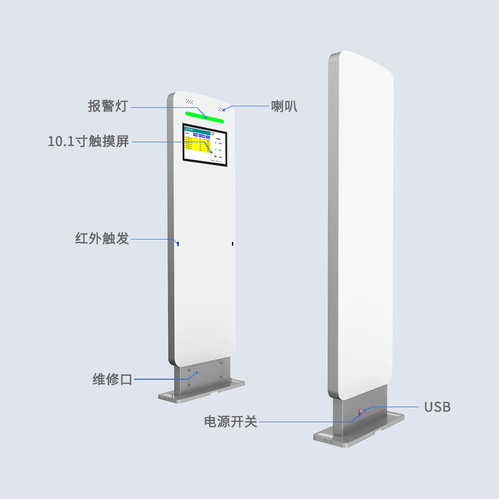 RFID安全门,精准统计进出,有效防盗,适用于图书馆、档案馆、商超等。它能实时监控人员流动,确保场所安全,同时简化票务验证,优化信息管理,提升整体运营效率。