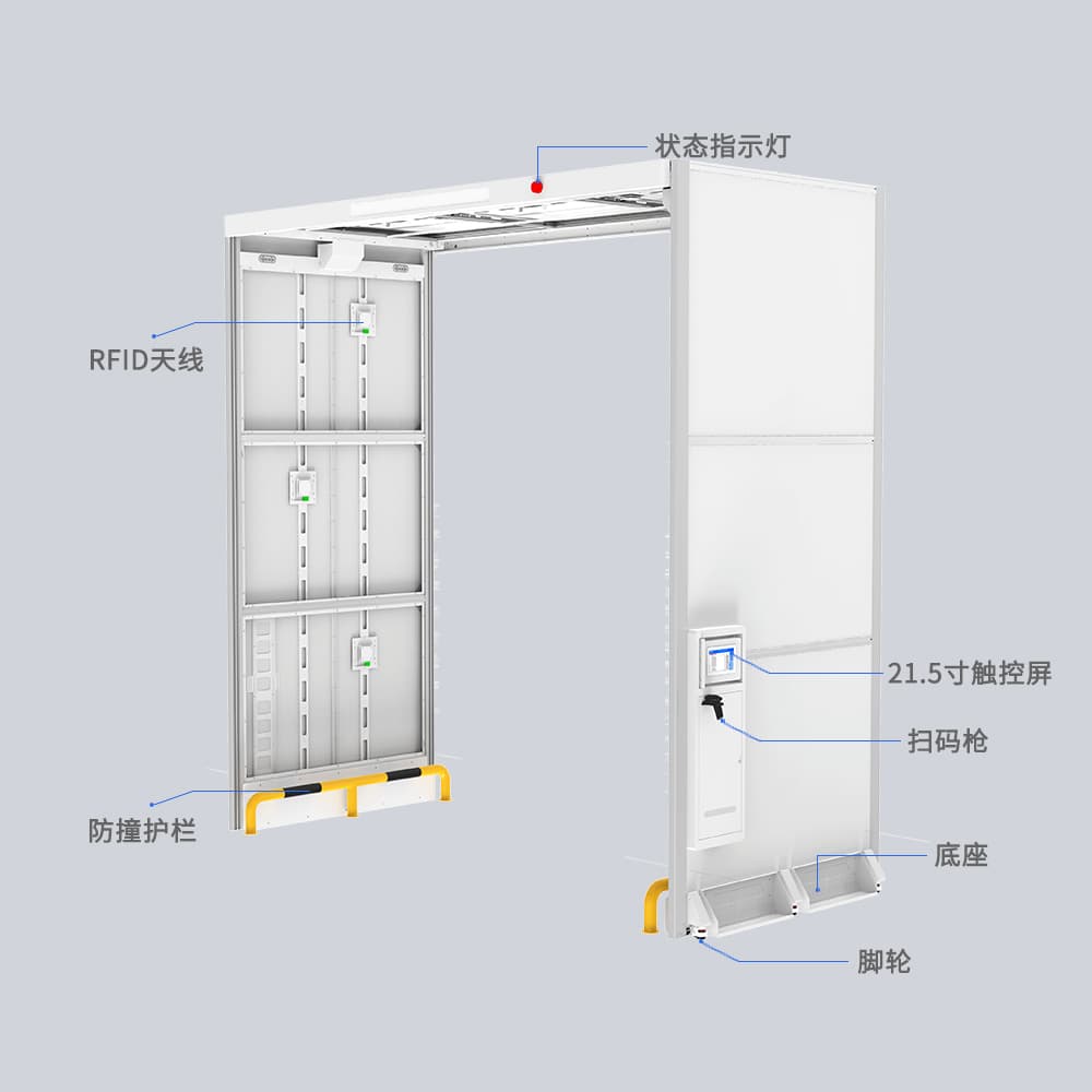 工业级RFID智能门禁搭载21.5寸触控终端,支持ISO18000-6C/EPC C1G2双协议。采用动态波束成形技术实现半径5米立体覆盖,离线模式下漏读率≤0.001%,单次扫描≤0.3秒读取500+标签,较人工盘点效率提升120倍,适配超大型仓储环境。