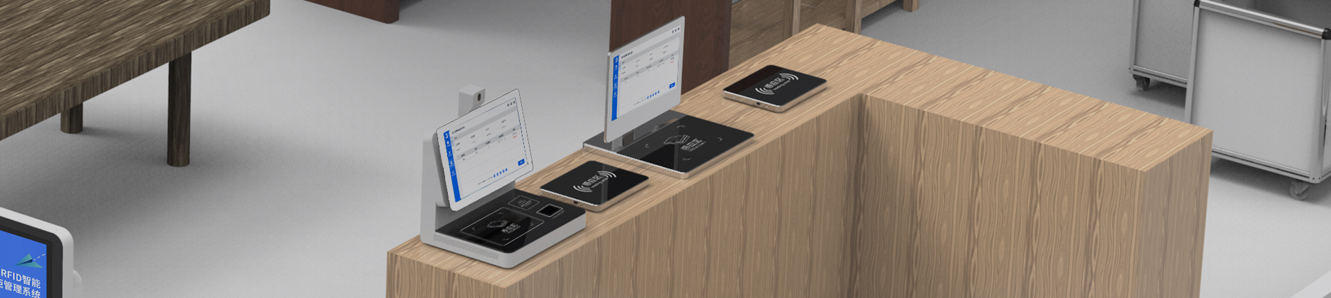 RFID智能工作站(館員工作站)用于近距離標簽讀取與業務操作的結合,適用于需要人工參與處理的工作場景。設備通常部署在桌面或服務臺,用于完成標簽識別、信息錄入及數據交互等操作。